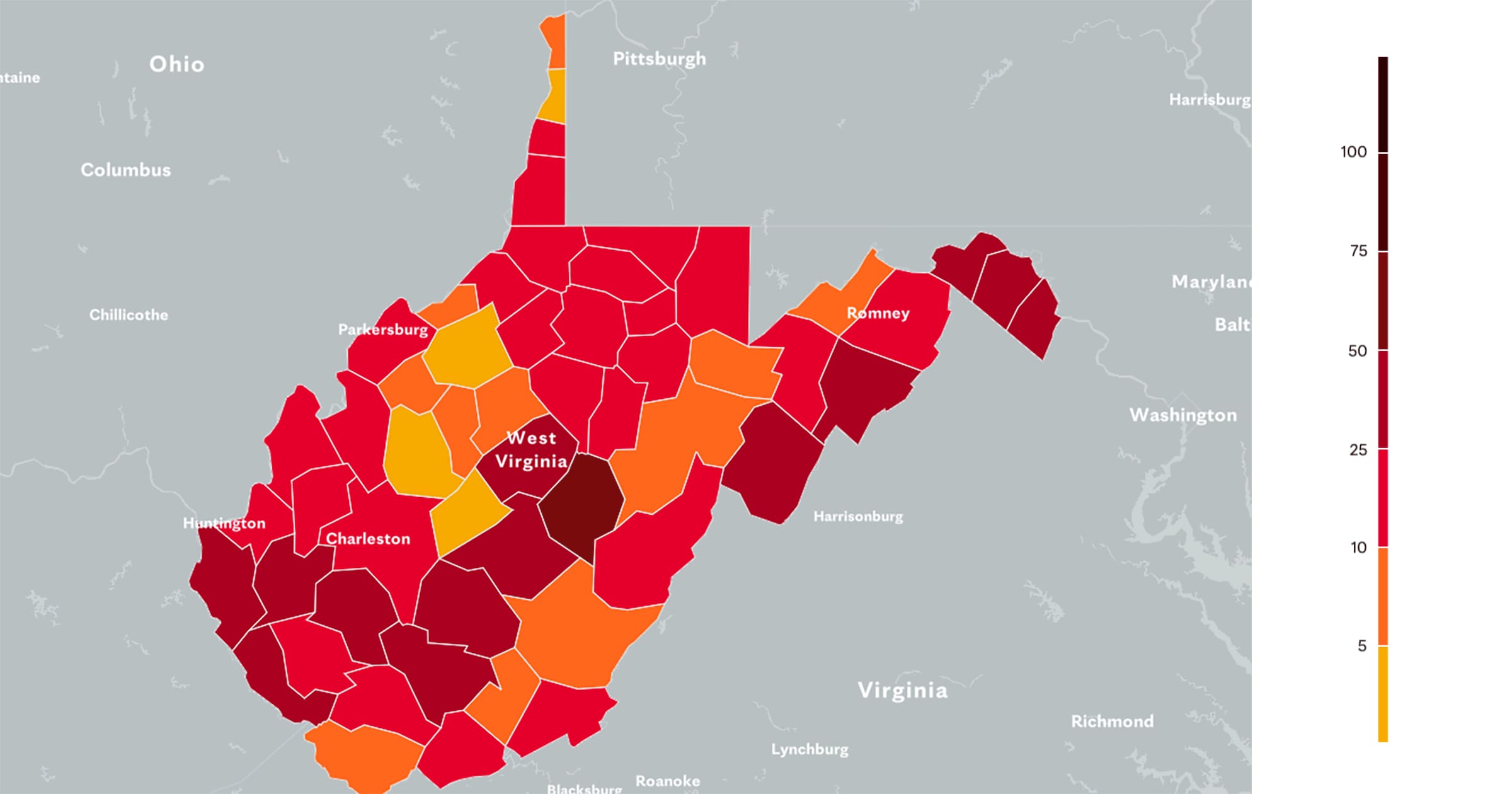 West Virginia Covid 19 Map Tracking The Trends